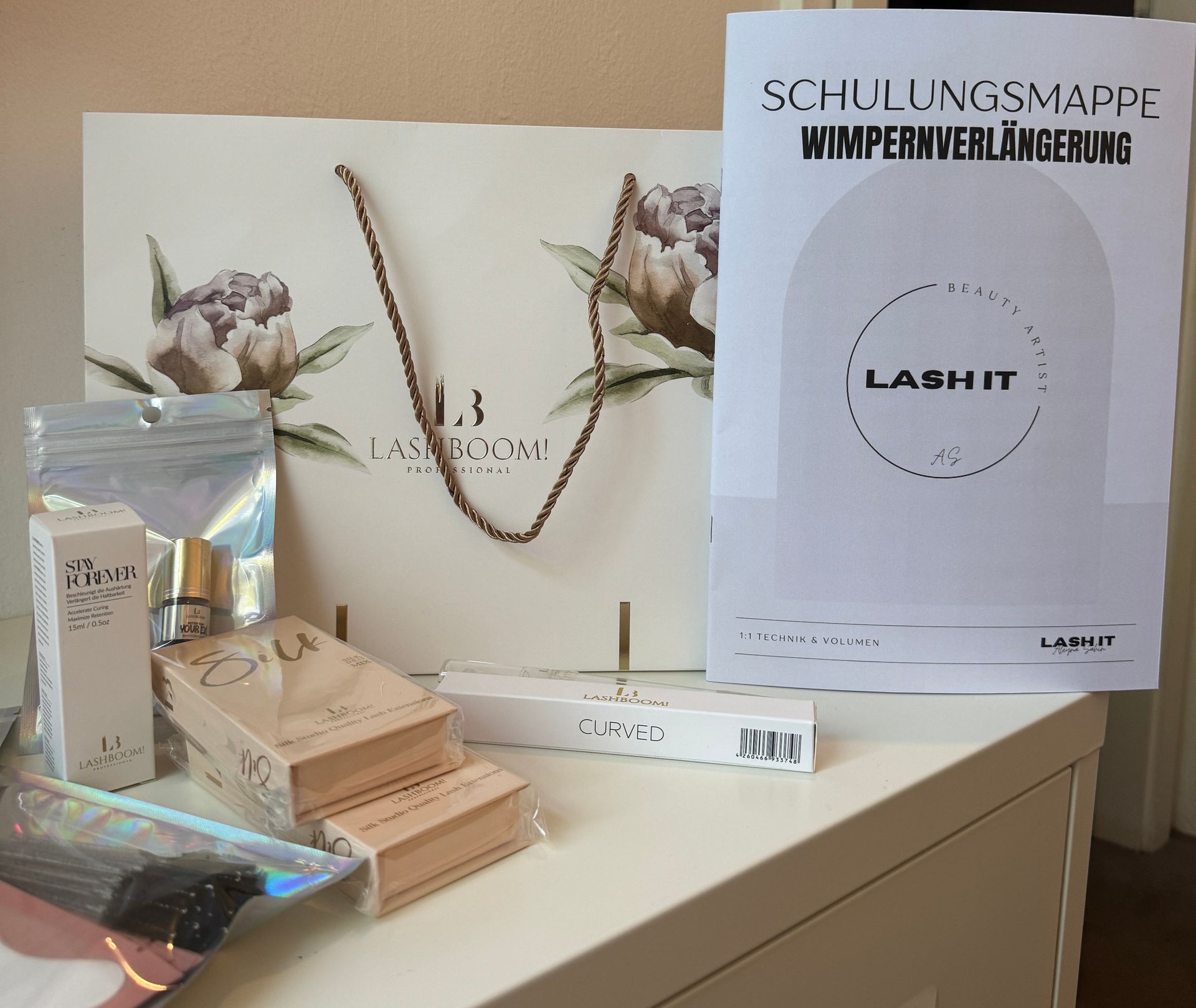 Ein Starterset im Wert von über 300 € mit hochwertigen Produkten von Lashboom kann optional dazu gebucht werden. Das Starterset beinhaltet:
